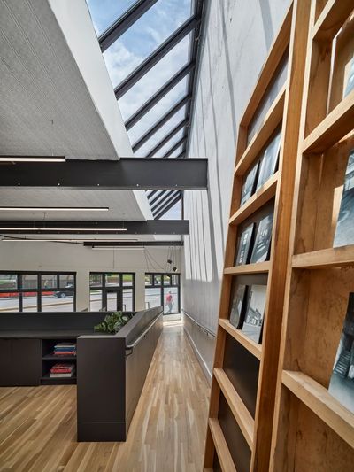 SUITE 101 - Originally a work yard for the Reliable Rug Company, this one-story office was an infill project between two buildings when Keosauqua Way was built in 1920. Historic materials such as pressed metal ceilings, wood floors and windows and steel beams make this a unique workspace. Daylight floods the space due to a recreated historic 60’ linear skylight and massive storefront windows along Keo Way. A new ramp was built to make the split-level space accessible to all. There is also a lower garden level that adds distinct character and separation of the suite. Today, this reimagined space could be retail or creative open office space with entrances on Keo & 12th Street. Call or text Matt for a tour 515.720.7101